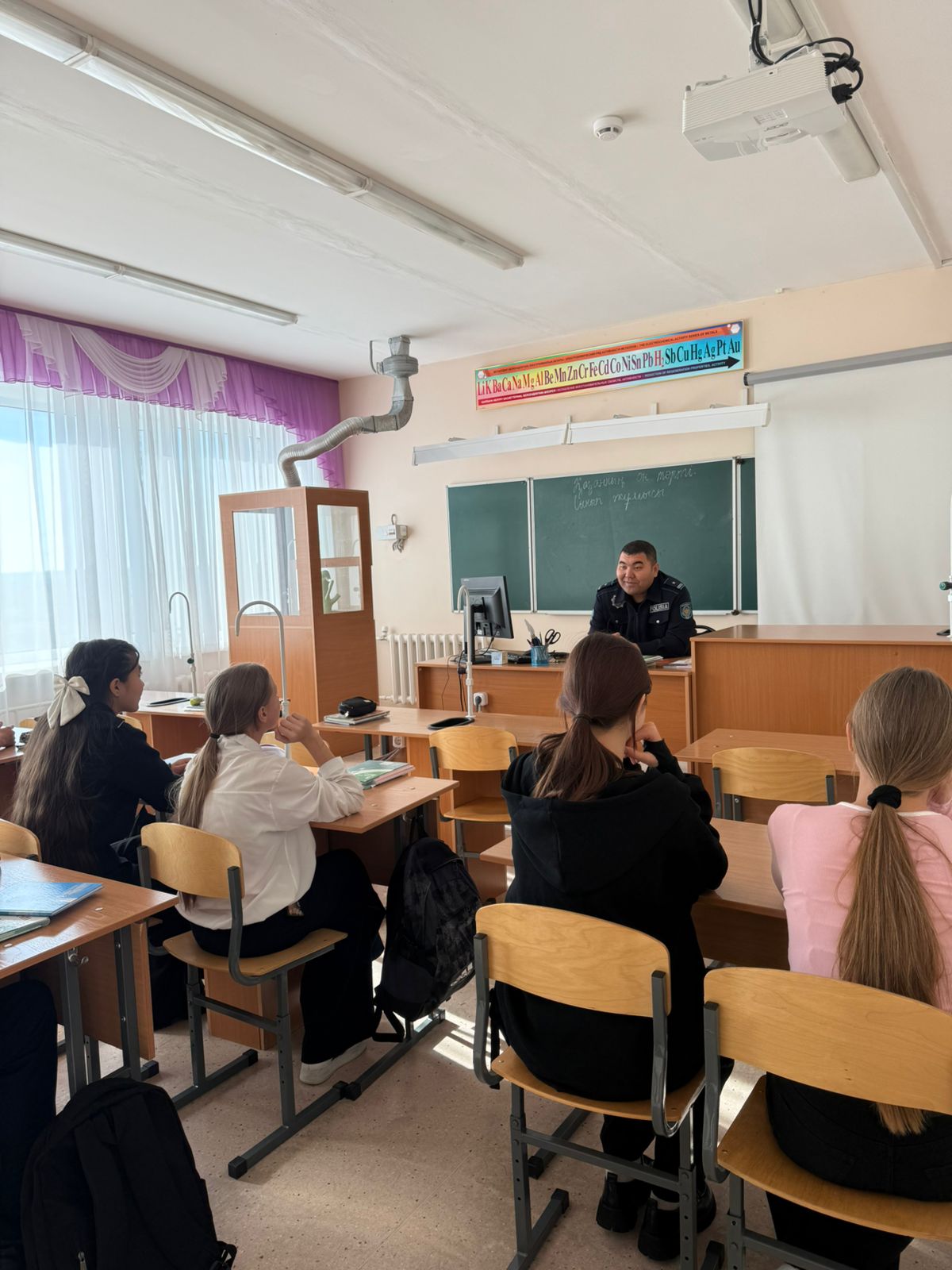 14 октября для учеников 8 - 9 классов старшим оперуполномоченным ОКП УП г.Рудного капитаном полиции Тажин М.О.,совместно с УИП ОЮП ОМПС УП г.Рудного майором полиции Махамбетов А.К.была проведена о профилактическая беседа по теме: «Профилактика и предупреждение наркомании среди несовершеннолетних».